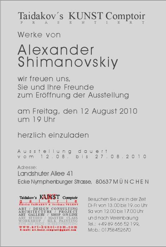 Copyright © 2010Taidakov´s KUNST Comptoir. All Rights Reserved