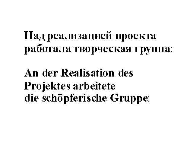 * Идея проекта – Михаил Казаковцев. * Конструкции – Евгений Гладков. * Текст – Елена Бертолло. * Дизайн плаката – Елена Третьякова. * Техническая поддержка – Никита Казаковцев. * Производство и монтаж – фирмы ЭЛМИ. * Место – галерея «Старый город», Новосибирск. * Время – январь 2010