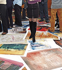 Между вдохом и выдохом короткая пауза. Между первым вдохом и последним выдохом - вся жизнь. Следите за паузами! Крутится молитвенный барабан. Магические формулы движутся по кругу. Они очищают пространство, приносят в души покой. 150 миллионов мантр переложены закладками из священной травы. Человеческая рука, ветер или вода приводят конструкцию в движение? Неважно, все получат о чем просили. Следите за паузами! Сложит крылья и сядет на ветку птица. Остановятся зверь и машина, прикроет глаза уставший смотреть человек. Мысль не знает покоя, движется через настоящее в будущее и обратно, Заполняет нашу внутреннюю пустоту. Следите за паузами! Линии, формы и пятна цвета – каждый художник пишет свои мантры. О чем он думает сейчас? Мы доверяем ему, ведь у нас нет выбора. И с надеждой на благосклонное внимание запускаем в движение барабан. Следите за паузами!