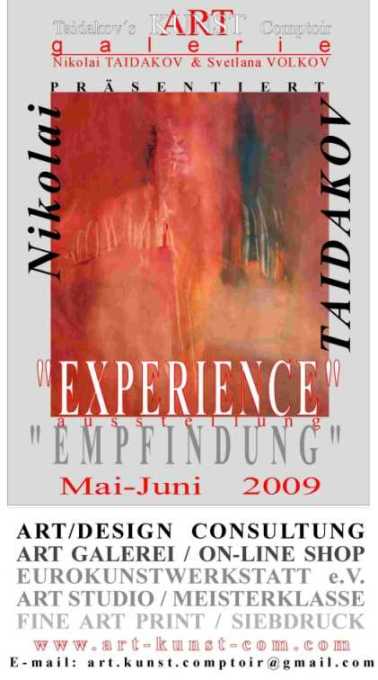 A U S S T E L L U N G ---------- NEUE ..... BILDER ...... auf ziklus...."E X P E R I E N C E - E M P F I N D U N G" -----2008-2009....... !!! R E R T O S P E K T --- 1 0 0 k u n s t w e r k e
