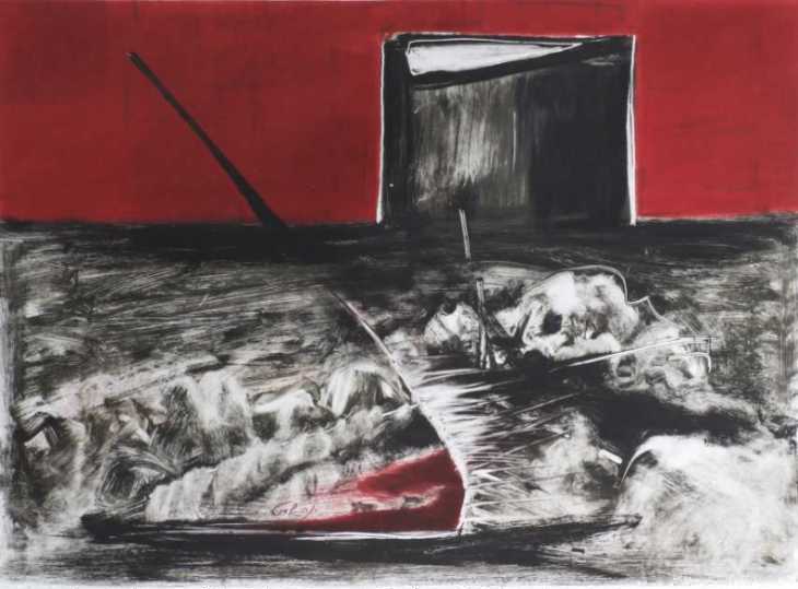 Die Originalmalerei, deren Spontanität und Vitalität mit seiner schnellen Schaffung verbunden ist, ist auf einmal zu einem permanenten Druck umgewandelt.