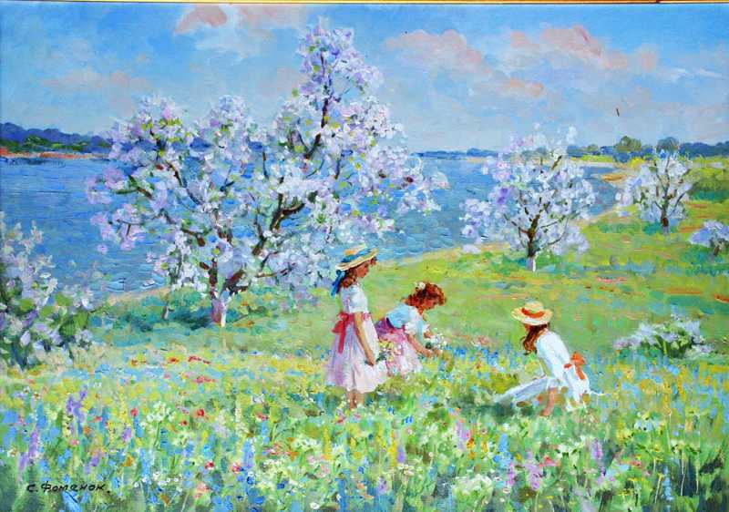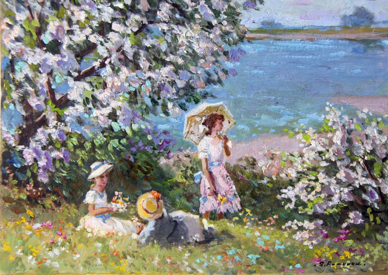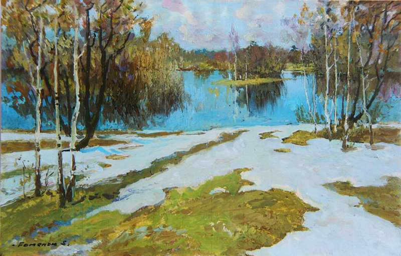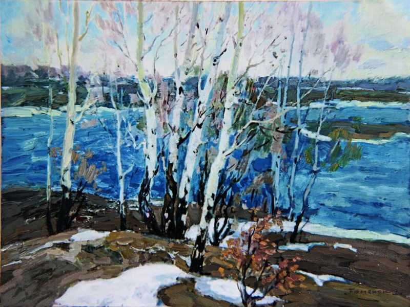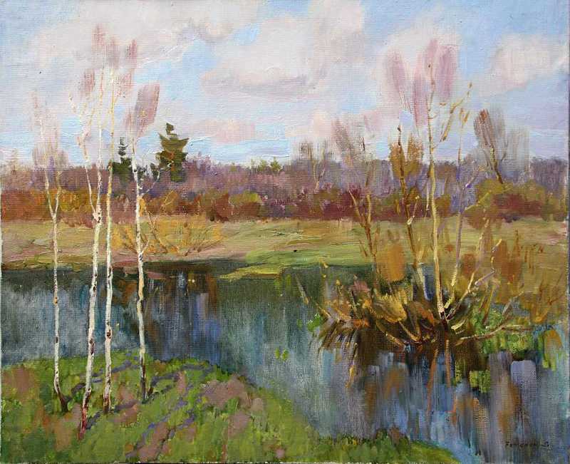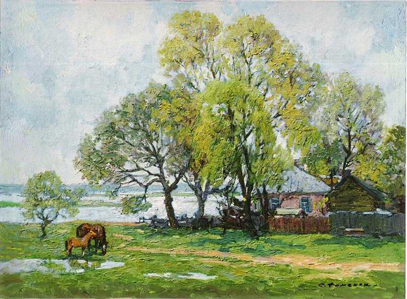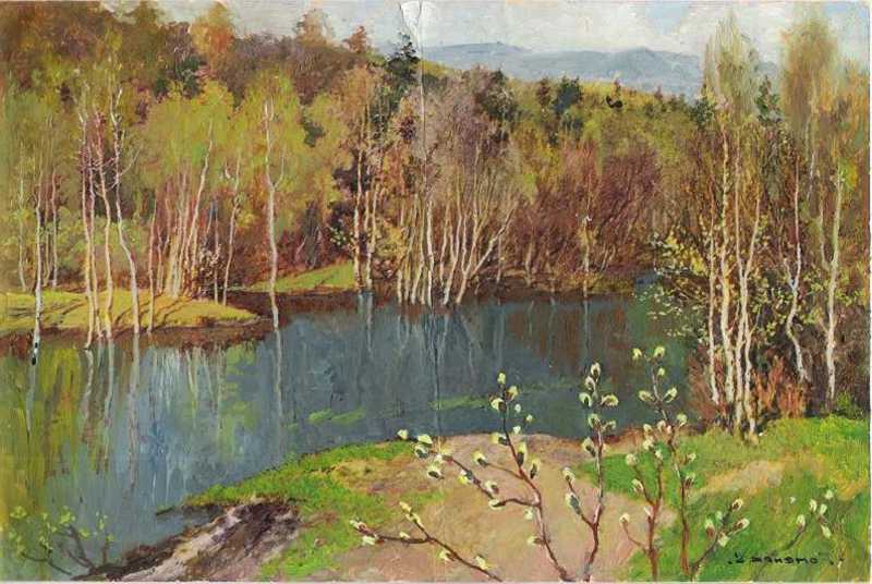 + Frühling. Landschaft mit Flus. |